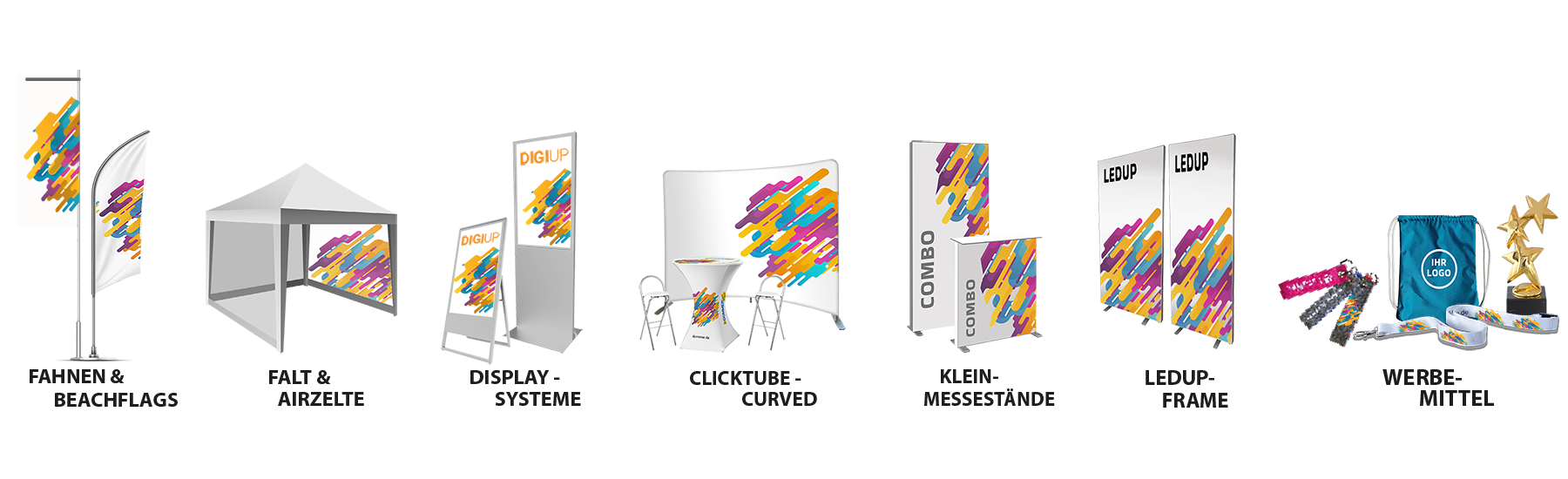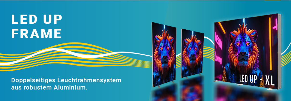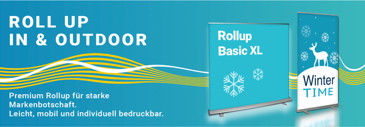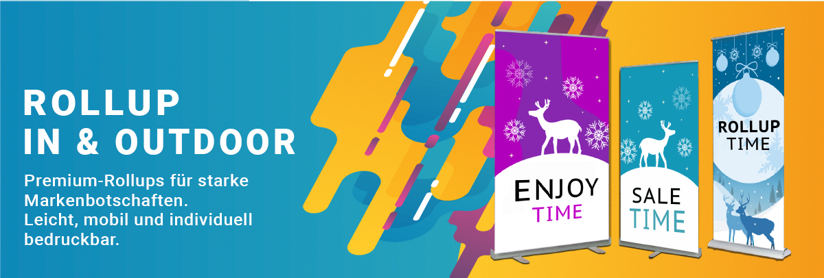 Werbefahnen, Beachflags, Roll Ups, Messewände – alles auf einen Click.
